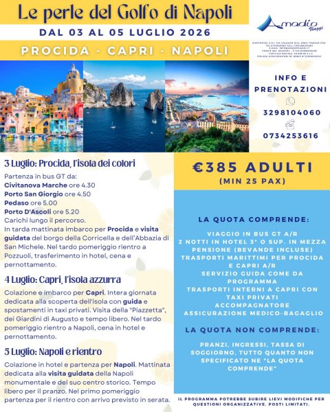 Le Perle del Golfo di Napoli – Dal 03 al 05 Luglio 2026 Un viaggio indimenticabile tra i colori di Procida, il ..