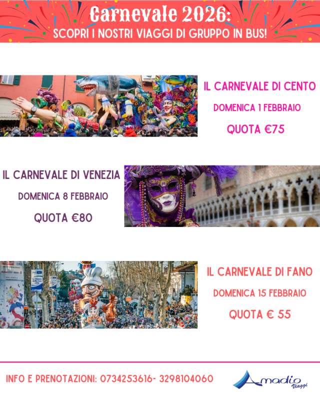 CARNEVALE 2026 – VIAGGI DI GRUPPO IN BUS