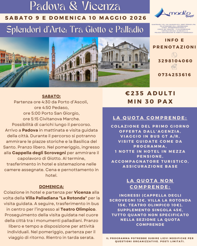 PADOVA & VICENZA - Dal 9 al 10 Maggio 2026