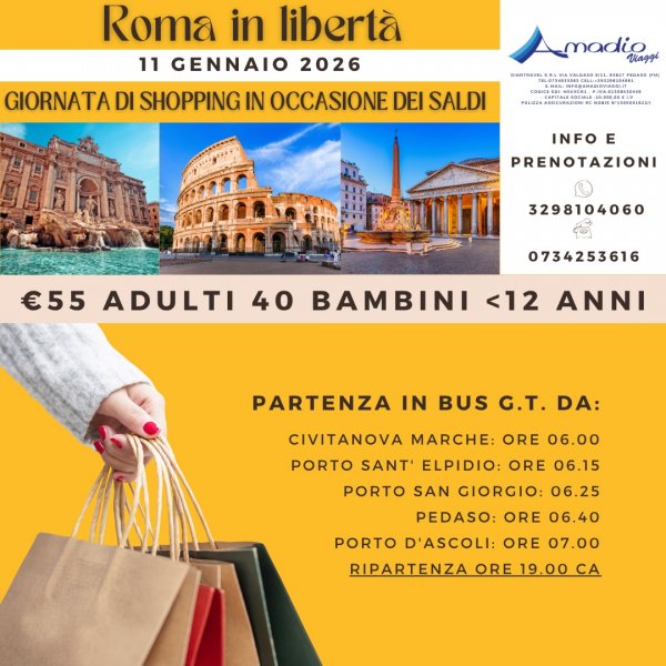 Vieni con noi DOMENICA 11 GENNAIO Giornata di Shopping a ROMA in occasione dei saldi Partenze da: Civitanova Marche: ORE ..