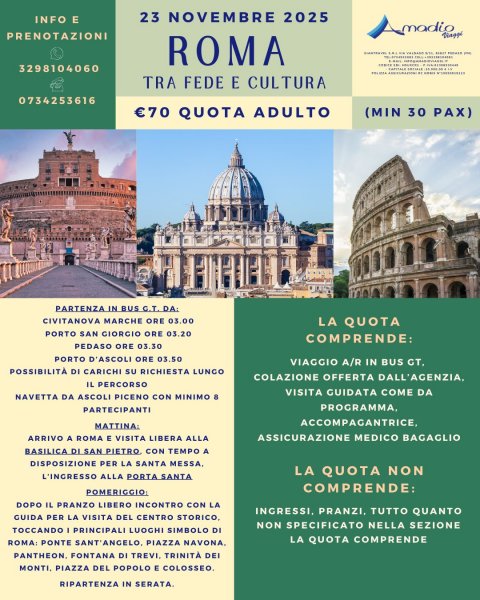 DOMENICA 23 NOVEMBRE 2025 Viaggio di gruppo in occasione delle ultime domeniche del Giubileo 2025, per vivere Roma in ..