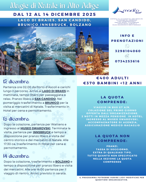 VIAGGIO DI GRUPPO IN BUS: LAGO DI BRAIES – SAN CANDIDO – BRUNICO – INNSBRUCK – BOLZANO Partenza ..