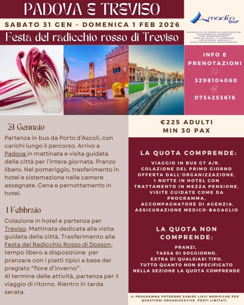 Sabato 31 gennaio – Domenica 1 febbraio 2026 PADOVA E TREVISO 39ª Festa del Radicchio Rosso a Dosson Un fine ..