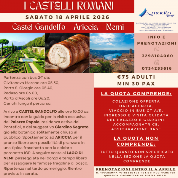 Vieni con noi SABATO 18 APRILE alla scoperta delle meraviglie dei Castelli Romani! Un’occasione unica per visitare in ..