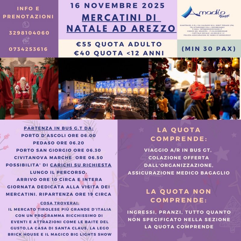 DOMENICA 16 novembre 2025! Scopriamo insieme I MERCATINI DI NATALE DI AREZZO!