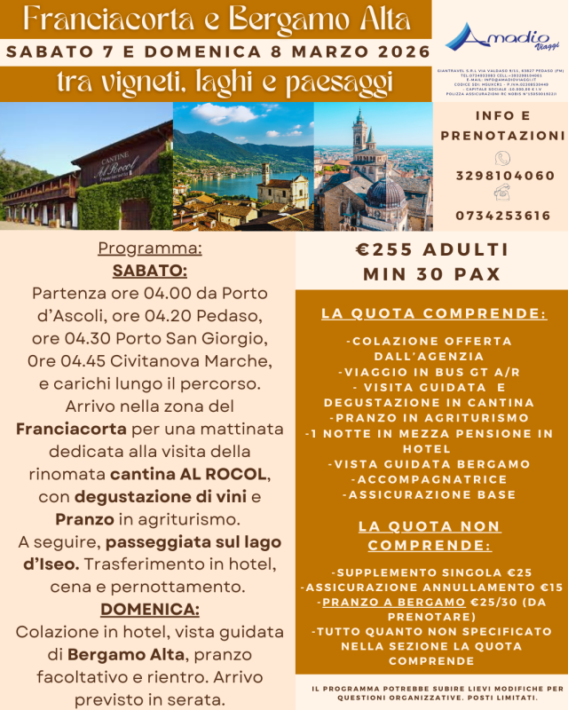 Scopriamo insieme il Franciacorta, Il lago d'Iseo e Bergamo Alta: tra vigneti, laghi e paesaggi