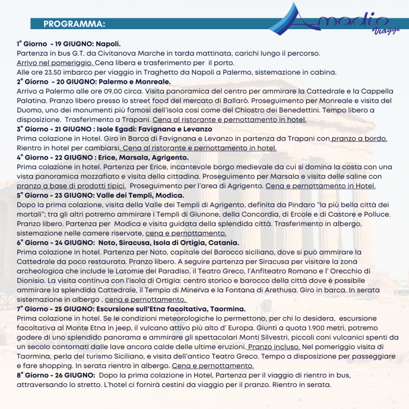 TOUR DELLA SICILIA Dal 19 AL 26 GIUGNO 2026