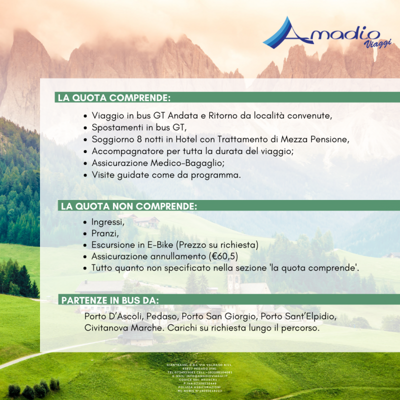 CLICCA SU DETTAGLI PER SCOPRIRE IL PROGRAMMA E TUTTO CIO’ CHE E’ INCLUSO NELLA QUOTA