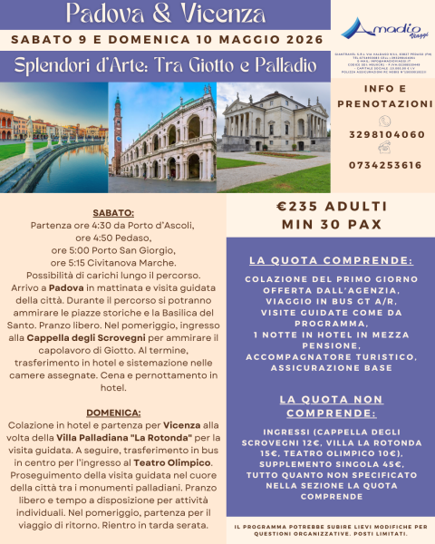 Vieni con noi alla scoperta del cuore del Veneto! Un weekend indimenticabile tra i colori di Giotto e le monumentali opere di ..